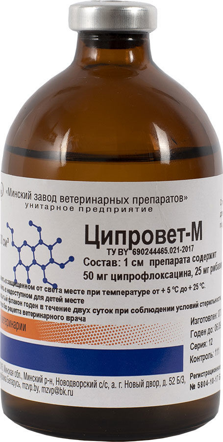 Состав: В 1 см3 препарата содержится 50 мг ципрофлоксацина, 25 мг рибавирина и вспомогательные вещества.