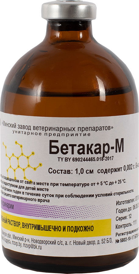Показания к применению: Препарат применяютв комплексной терапии при лечении животным с нарушением обмена веществ, вызванным недостаточностью каротина, витамина А, заболеванийжелудочно-кишечного тракта и органов дыхания, гепатозах, гипотрофии, для повышения резистентности организма, а также для повышения продуктивности животных и профилактики субинволюции матки, послеродовых эндометритов, дисфункции яичников и недостаточной функции желтого тела беременности.